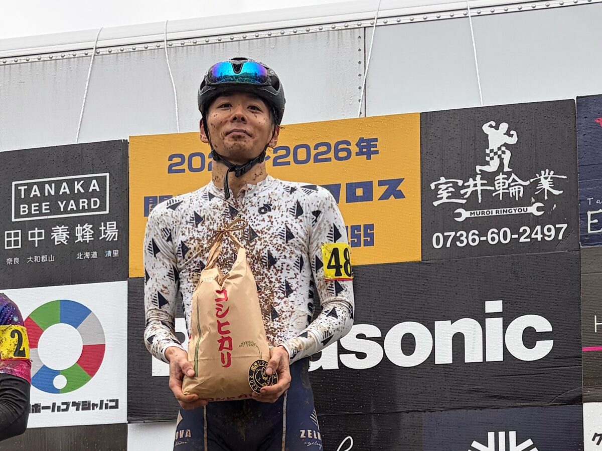 すると、ゴール直前で先頭の選手が絡んで落車。あ、優勝!?と思ったら、もう一人、個人ゼッケンがいた。2位。
