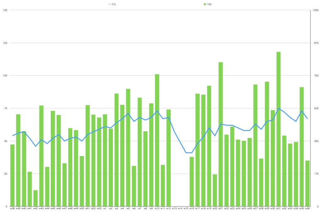 木曜日早朝出発で鈴鹿入りってことで、トレーニングできたのは火曜日と水曜日のみ。TSS的には245tss/wしか稼げなくて、CTLも70台から60台に落ちてしまった。カートと自転車レースを両立する上て、この辺りは課題。