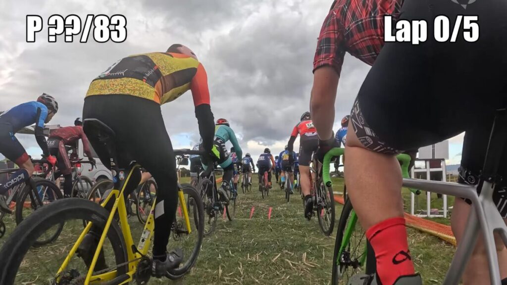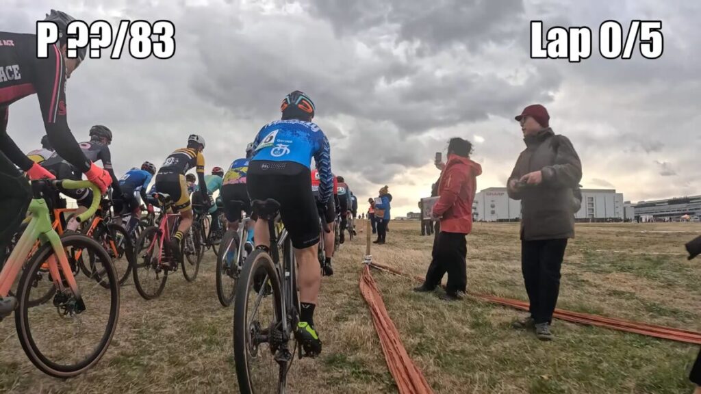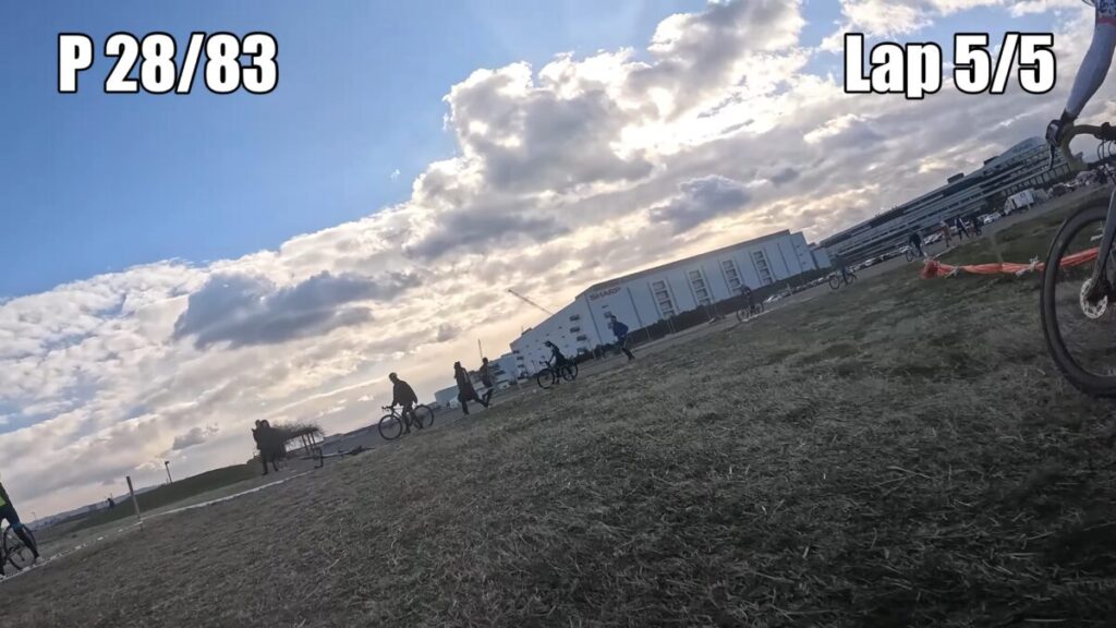 今回の堺浜は東海CX愛知牧場と日程が被っていたものの盛況で、M1のエントリーは104名。AJOCC M1ランキング142位な自分のゼッケン番号は74。いつも通り、後方スタート。今日のレースでもうちょっと、スタート位置を上げたい・・・。