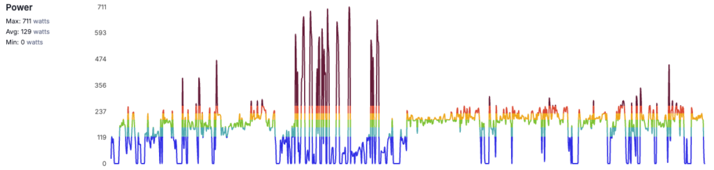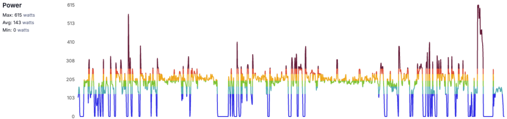 下り含む周回コースでメニューこなしたので、NPは低め。2本目の数値を落としといて言うのも微妙だけど、インターバル練ばっかりやってると、普通の20分FTP走が楽に感じる。